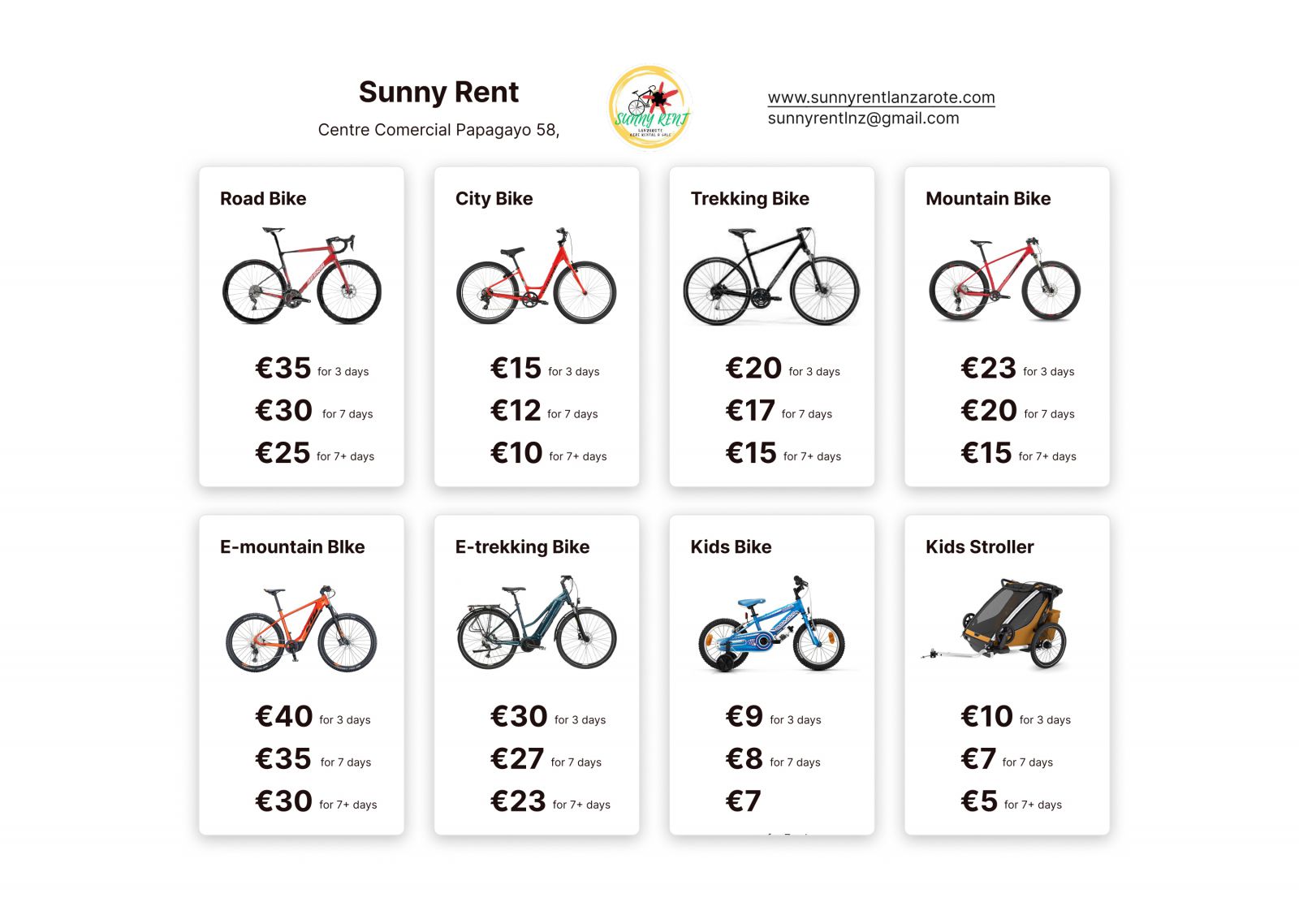 Aquí puede encontrar el listado de precios de nuestras bicicletas